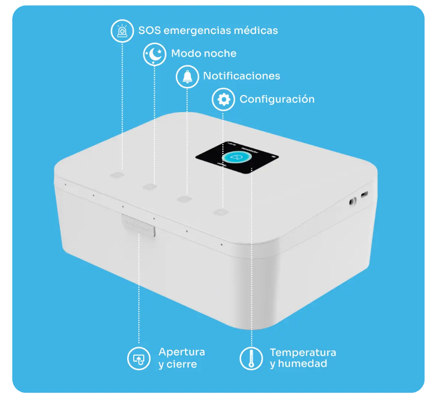 Gracias a sus sensores integrados, el CareBox 3 te ofrece información valiosa y en tiempo real sobre factores ambientales clave. Mide la calidad del aire en tu hogar, alertándote sobre posibles contaminantes o niveles que podrían afectar tu sistema respiratorio o tu bienestar general. Además, monitoriza la temperatura no solo de su entorno inmediato, sino que también se nutre de información meteorológica externa a través de APIs, ofreciéndote una visión completa. A esto se suma la medición de la humedad, un factor determinante para el confort respiratorio y la prevención de problemas como la sequedad o el exceso de condensación.